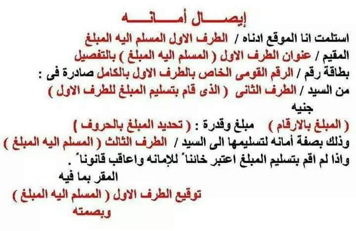 ضروري تحتفظ بصوره بطاقه الرقم القومي لشخص الموقع علي الايصال
